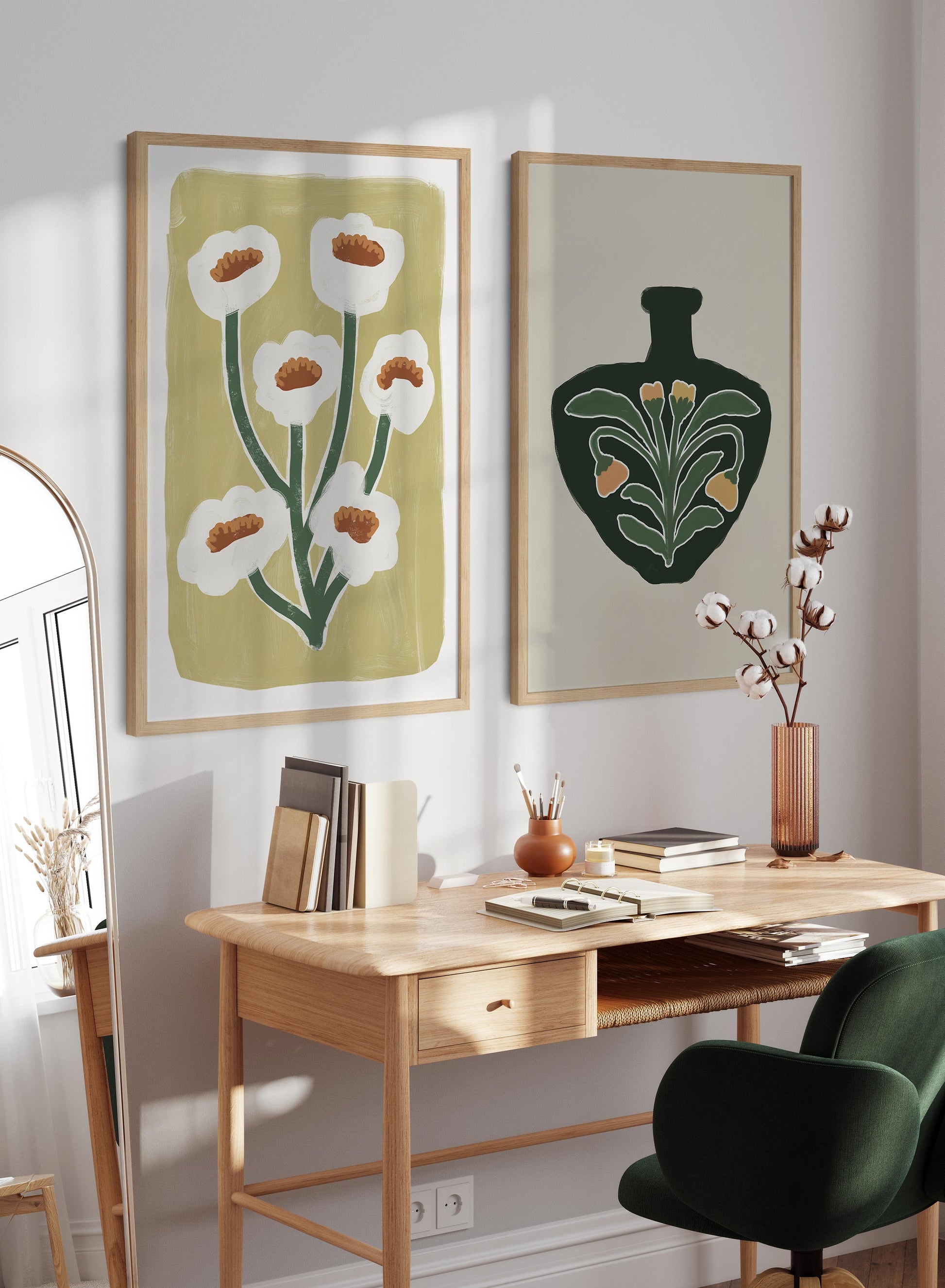 The only thing better than getting flowers is getting a flower print! This fun floral painting features white daffodils with orange centers and green stems over a textured yellow background. Try working this one into your gallery wall or showing it off on its own. You’ll see: color is good for the soul!